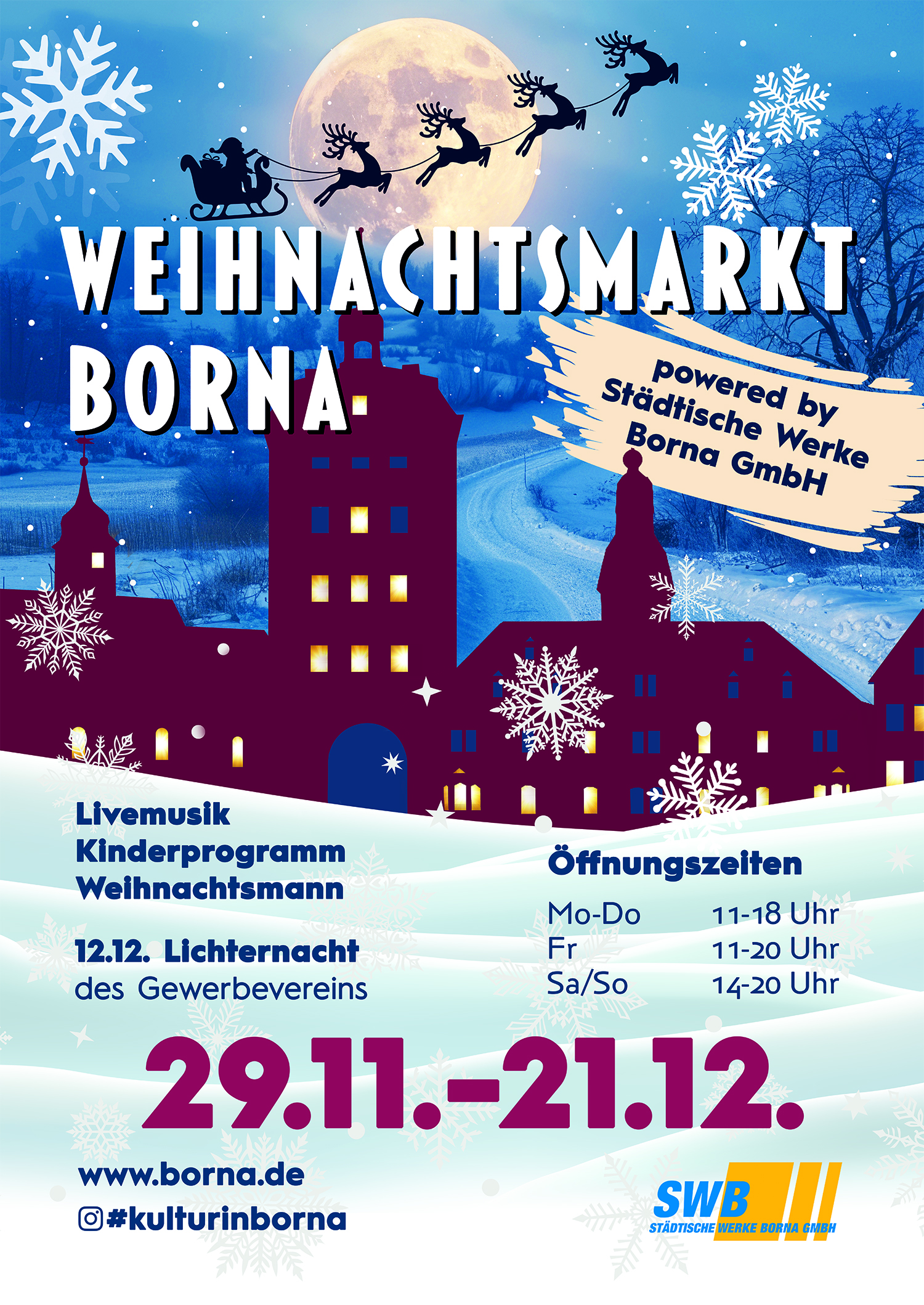 Vom 29.11. bis 21.12. erstrahlt unsere Stadt im Lichterglanz: Der Weihnachtsmarkt lädt mit festlicher Stimmung, Leckereien und Highlights zum Genießen ein. 🎄✨